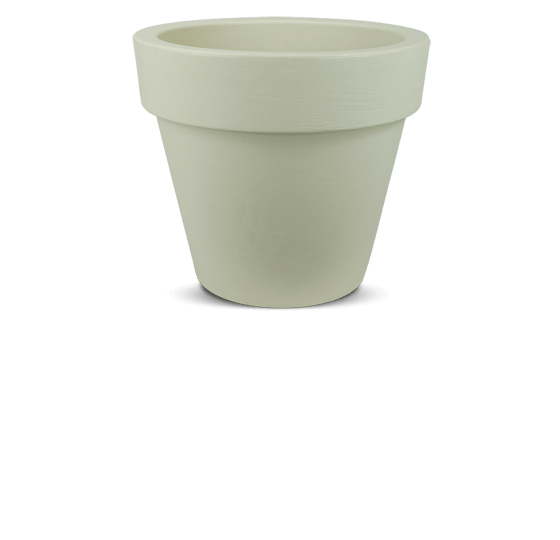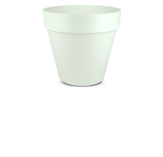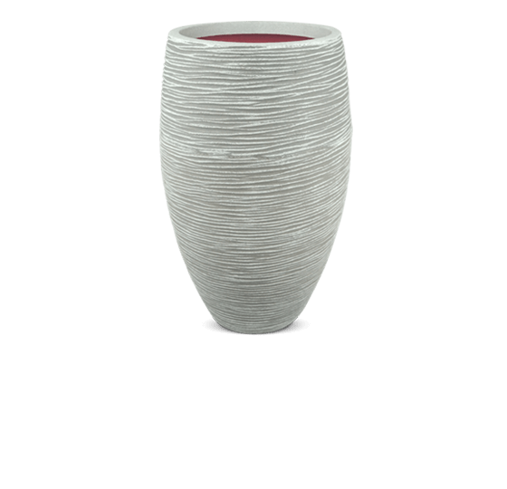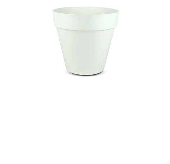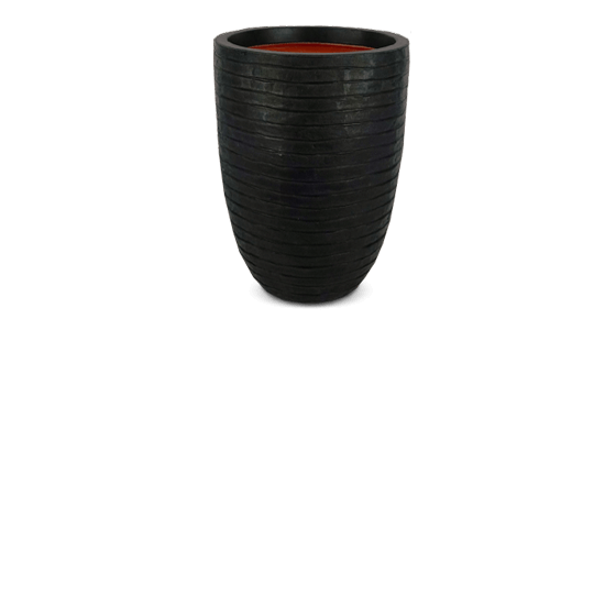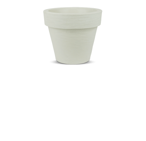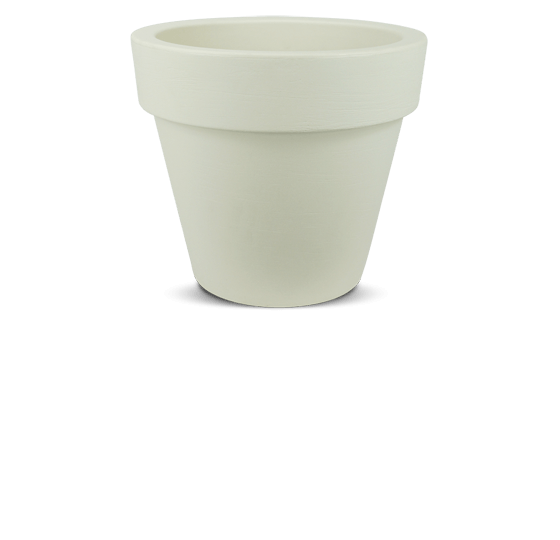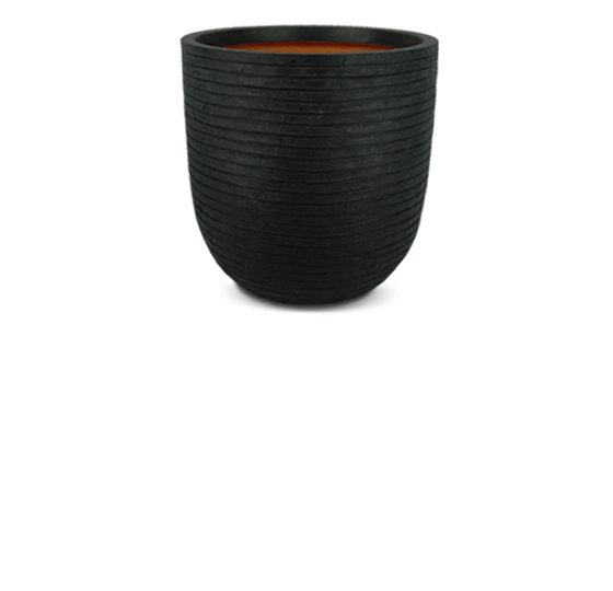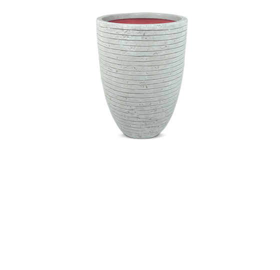 Material: Kunststoff-Verbund. Dieser Topf hat eine geriffelte Oberfläche und ist federleicht. Bei der orangen Innenbeschichtung handelt es sich um eine Isolationsschicht, die die Pflanzen im Winter vor Kälte und im Sommer vor Hitze schützt. Dieser Topf ist in weiß und schwarz erhältlich.