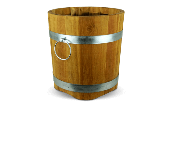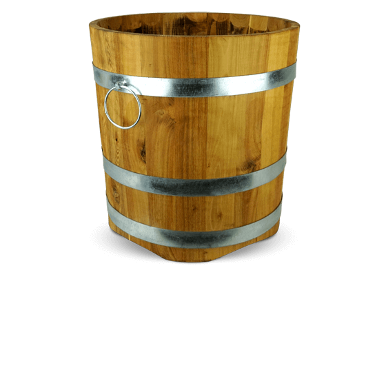 Material: Akazienholz und verzinkter Stahl. Die Ringe sind korrosionsbeständig und die Griffe an den Außenseite machen einen leichteren Transport möglich. Die Innenseite der Tröge wurde geflämmt, wodurch das Holz langlebiger und witterungsbeständiger ist.