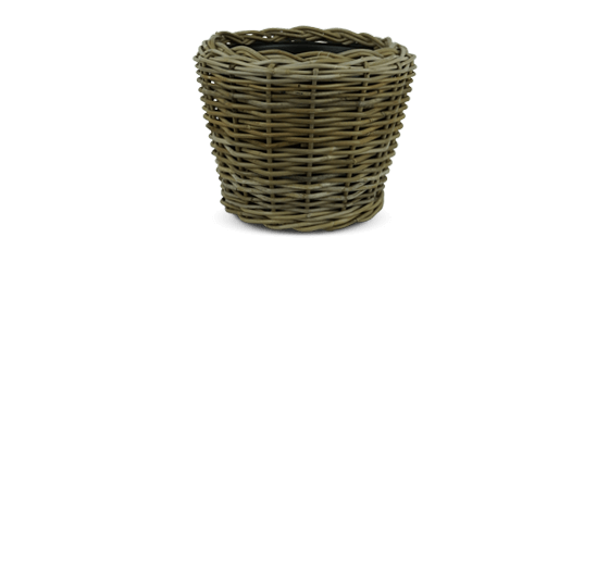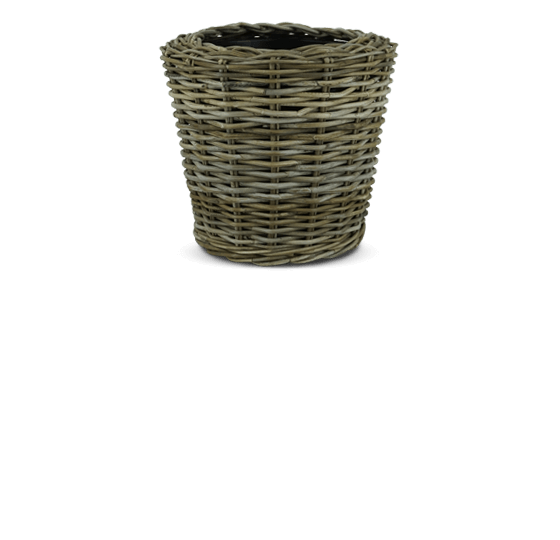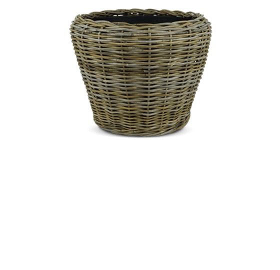 Material: Korbgeflecht mit Innentopf aus Kunststoff. Das Korbgeflecht ist handgefertigt und mit einem PVC-Innentopf ausgestattet, was die Haltbarkeit deutlich verbessert, da das Korbgeflecht nicht mit dem Substrat in Berührung kommt.